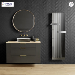 Radiateur de salle de bains design et connecté, à façade active en glace de verre trempé et soufflerie intégrée. Campaver Bains la référence technologique du radiateur verre adapté à la salle bains.