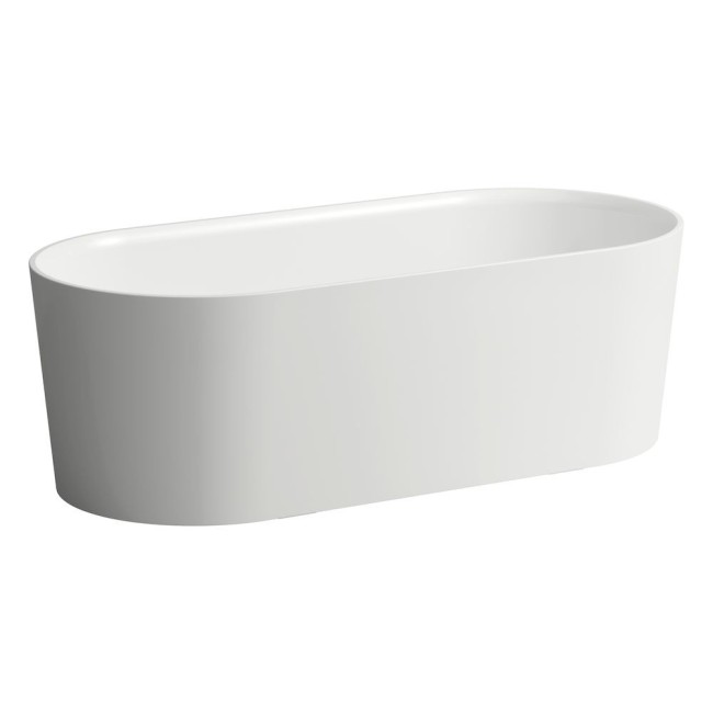 Baignoire indépendante, en solid surface Sentec, aspect blanc satiné, avec trop-plein intégré et pieds, livrée avec vidage.