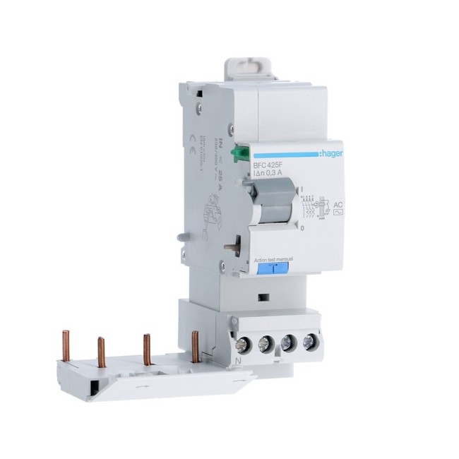 Bloc dif 3P+N 25A 300mA AC - BLOCS DIFFERENTIELS HAGER BFC425F PROTECTION DIFF TERT - BLOCS DIFFERENTIELS