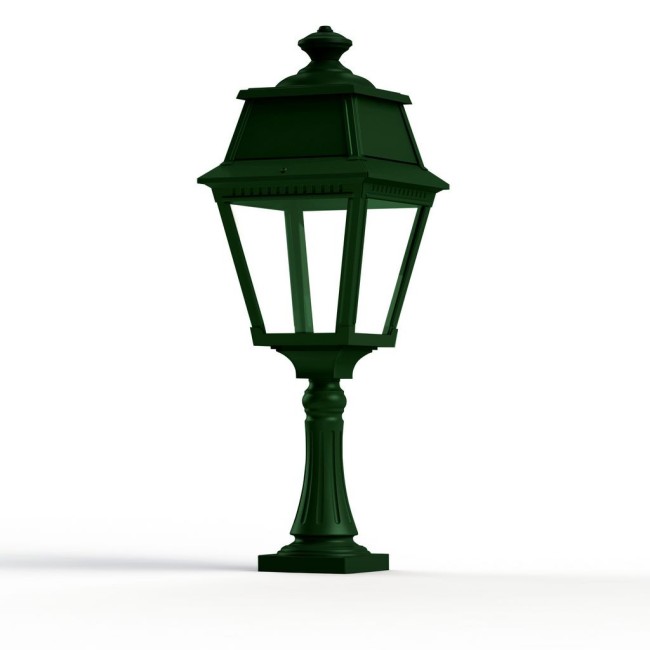 Borne AVENUE 2 en aluminium, LED 13W 2700°K, IP44, classe 1, diffuseurs verre clair. Teinte RAL 6009 Vert anglais 019. Garantie 25 ans anticorrosion sur l'aluminium