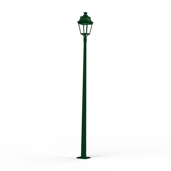 Lampadaire cylindroconique AVENUE 3 en aluminium, hauteur 3622mm, LED 35W 3000°K, IP44, classe 1, diffuseur verre clair. Teinte RAL 6009 Vert sapin 067. Garantie 25 ans anticorrosion sur l'aluminium