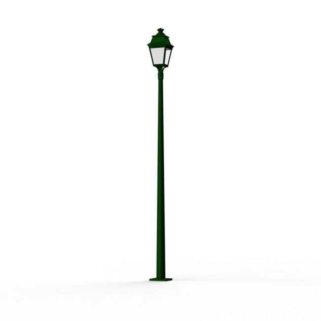 Lampadaire cylindroconique AVENUE 3 en aluminium, hauteur 3622mm, LED 35W 3000°K, IP44, classe 1, diffuseur méthacrylate opale. Teinte RAL 6009 Vert anglais 019. Garantie 25 ans anticorrosion sur l'aluminium