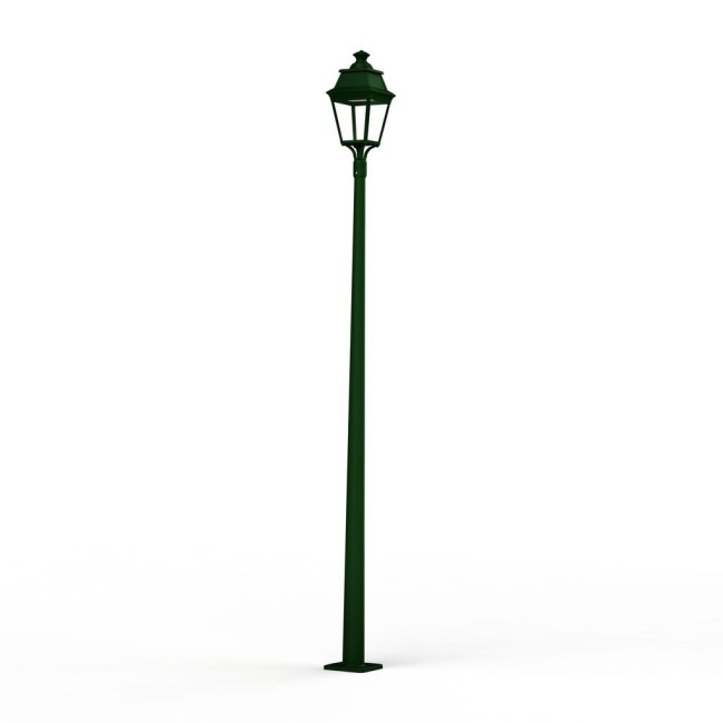 Lampadaire cylindroconique AVENUE 3 en aluminium, hauteur 3622mm, LED 35W 2700°K, IP44, classe 1, diffuseur verre clair. Teinte RAL 6009 Vert anglais 019. Garantie 25 ans anticorrosion sur l'aluminium