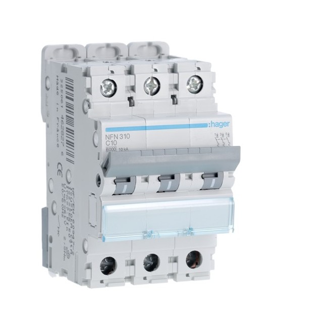 Disj.3P 6-10kA C-10A 3m - DISJONCTEURS MULTI. HAGER NFN310 PROTECTION TERTIAIRE - DISJ MULTI.6KA C