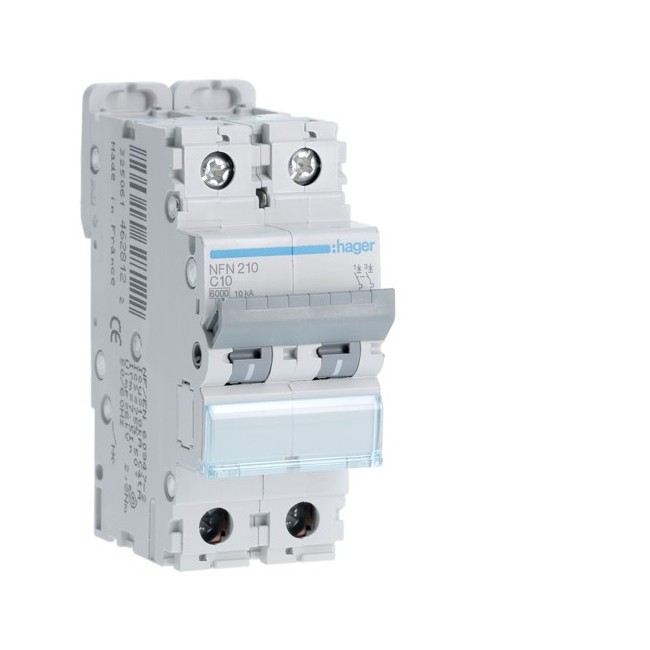 Disj.2P 6-10kA C-10A 2m - DISJONCTEURS MULTI. HAGER NFN210 PROTECTION TERTIAIRE - DISJ MULTI.6KA C