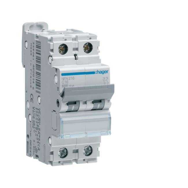 Disj.2P 6-10kA C-16A 2m - DISJONCTEURS MULTI. HAGER NFN216 PROTECTION TERTIAIRE - DISJ MULTI.6KA C