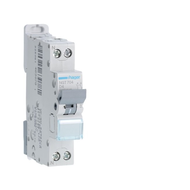 Disj.1P+N 6-10kA D-4A 1m - DISJONCTEURS PH+N HAGER NGT704 PROTECTION TERTIAIRE - DISJ. PH+N 6KA D