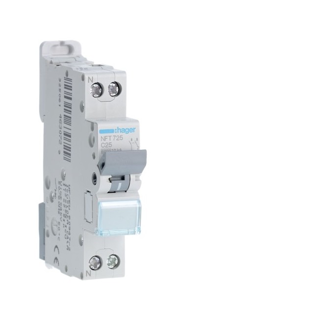 Disj.1P+N 6-10kA C-25A 1m - DISJONCTEURS PH+N HAGER NFT725 PROTECTION TERTIAIRE - DISJ. PH+N 6KA C