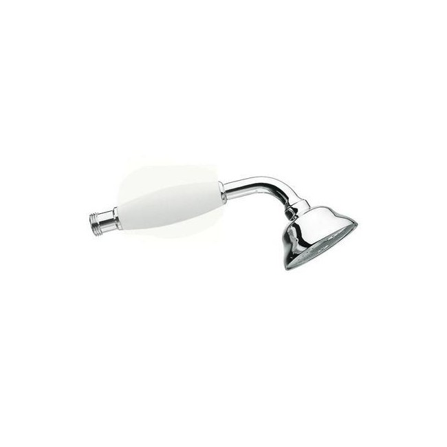 Cette douchette chromée avec sa poignée en céramique blanche à un style rétro .
