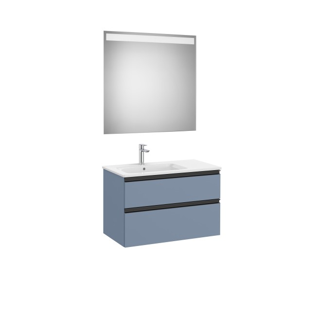 The Gap Pack 2T Lavabo À Droite (Unik+Miroir) 800Mm Bleu Mat/ Poignées Noires - ROCA A851513548