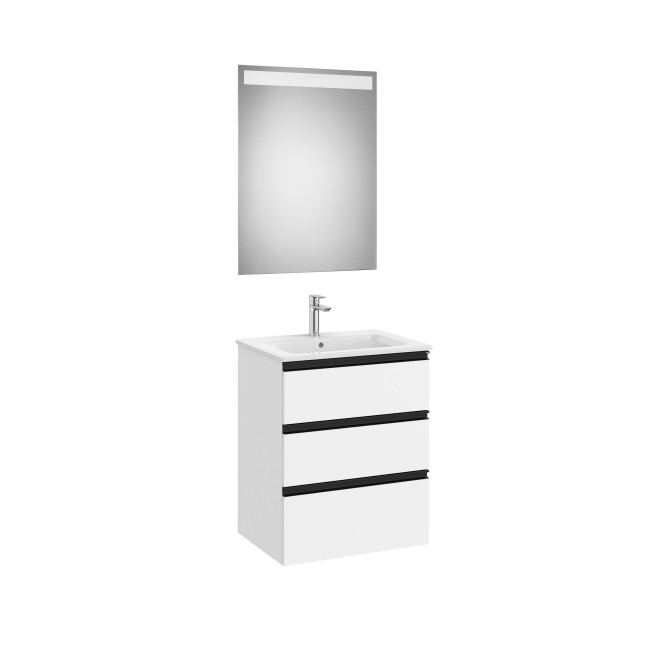 The Gap Pack 3 Tiroirs (Unik+Miroir) 600Mm Blanc Mat/Poignées Noires - ROCA A851517509