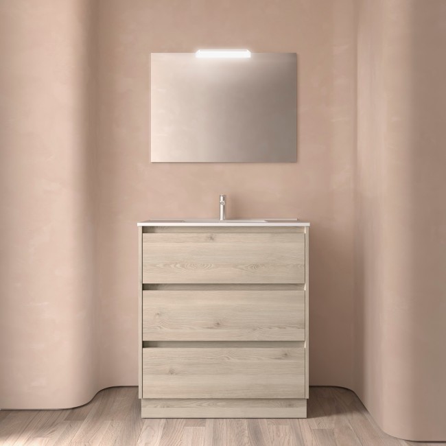 Meuble salle de bains 80cm 3 tiroirs et miroir Chêne Naturel NOJA - SALGAR 105634