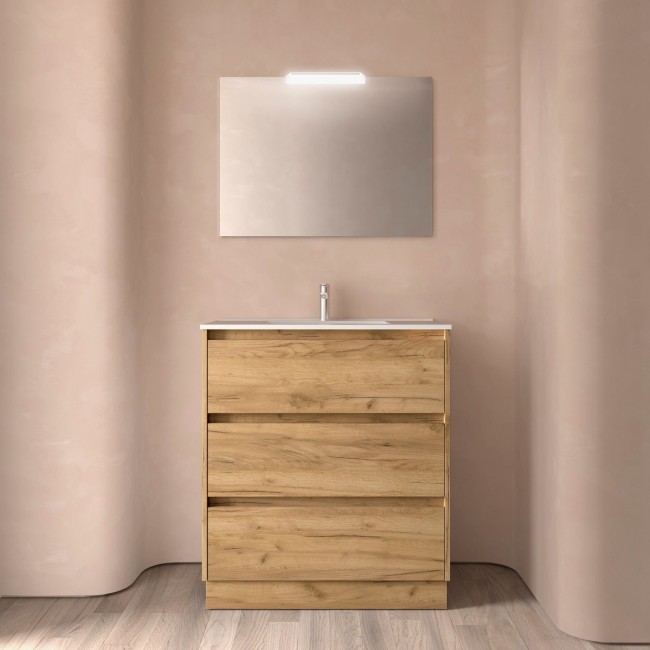Meuble salle de bains 80cm 3 tiroirs Chêne Africain NOJA : Concevez votre salle de bains comme vous le souhaitez avec la qualité Salgar !