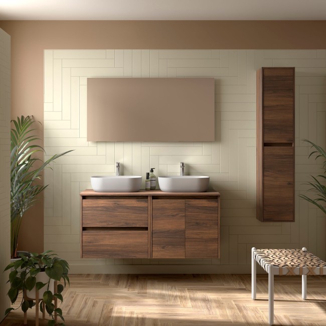 Meuble salle de bains et plan de toilette 120cm 2 tiroirs 2 portes Noyer Maya NOJA : Concevez votre salle de bains comme vous le souhaitez avec la qualité Salgar !