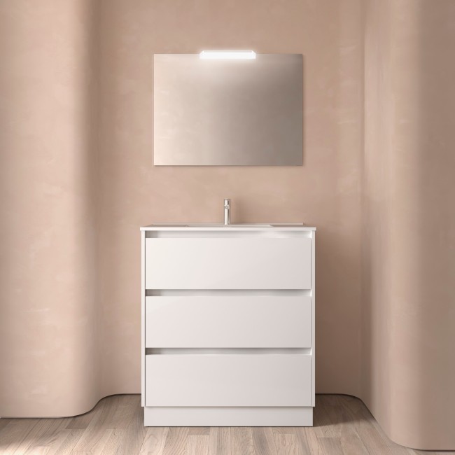 Ensemble NOJA II 800 3 tiroirs Blanc Brillant (Meuble de salle de bain+plan vasque) dimensions mm: largeur 800 x profondeur 450 À poser Réf. 106214 SALGAR
