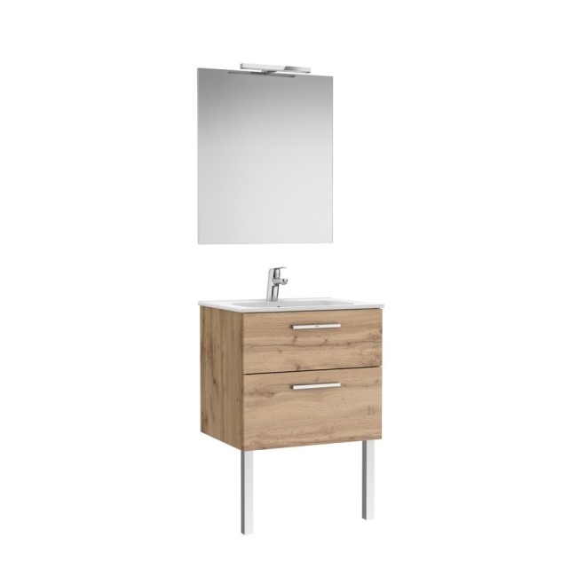 Victoria pack meuble 2 tiroirs + lavabo + miroir victoria + applique starlight new 600mm noyer
