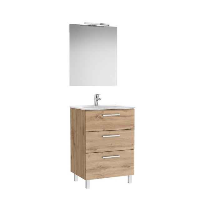 Victoria pack meuble 3 tiroirs + lavabo + miroir victoria + applique starlight new 600mm noyer