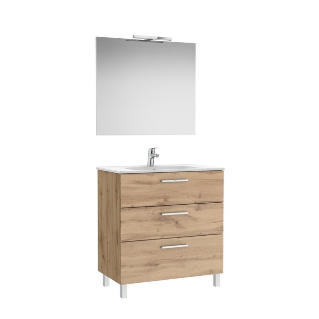 Victoria pack meuble 3 tiroirs + lavabo + miroir victoria + applique starlight new 800mm noyer