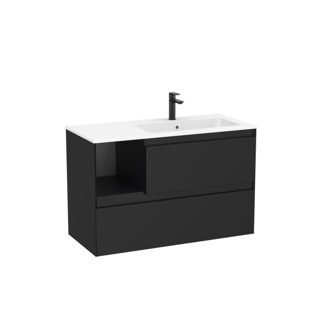 Tenue unik 2 tiroirs lavabo asymétrique droite 1000mm noir mat - ROCA A851938532