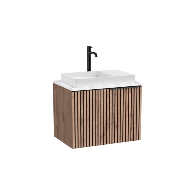 Horizon unik meuble en bois rainuré riviera oak 1 tiroir 700 + plan en marbre de synthèse blanc + vasque à poser dash 600x380 mm blanc mat