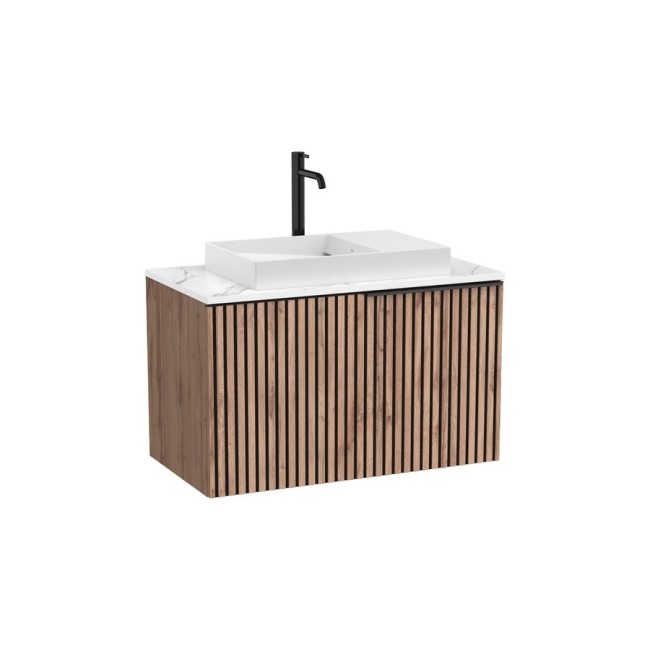 Horizon unik meuble en bois rainuré riviera oak 1 tiroir 900 + plan en marbre de synthèse blanc + vasque à poser dash 600x380 mm blanc mat