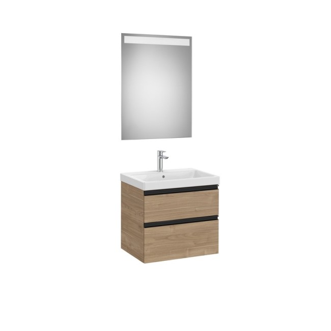 The gap pack 2 tiroirs lavabo mural (unik+miroir) 600mm noyer/poignées noires - ROCA A851974517