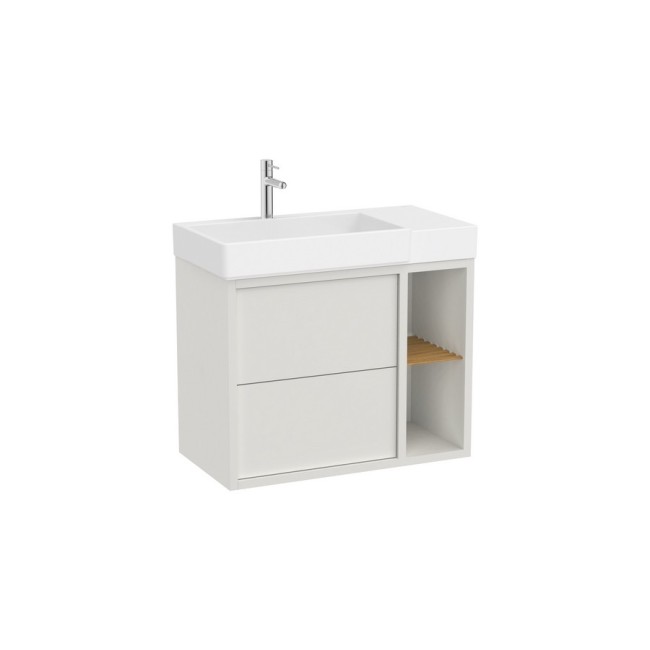 Tura unik (solution meuble asymétrique 2 tiroirs + 2 niches latérales + lavabo asymétrique avec cuve à gauche 800 mm blc cassé mat