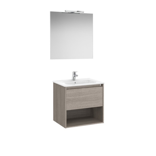 Tenor pack (meuble 1 tiroir et 1 niche inférieure + 1 lavabo + 1 applique starlight) 600 mm city oak