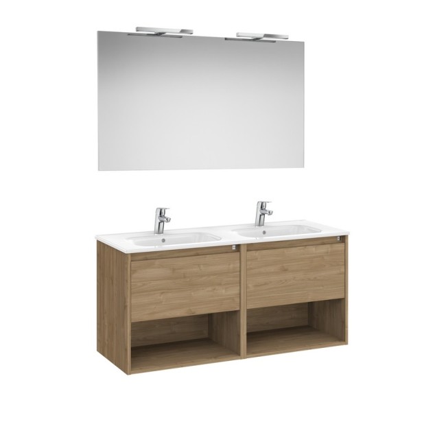 Tenor pack (meuble 1 tiroir et 1 niche inférieure + 1 lavabo + 2 appliques starlight) 1200 mm noyer