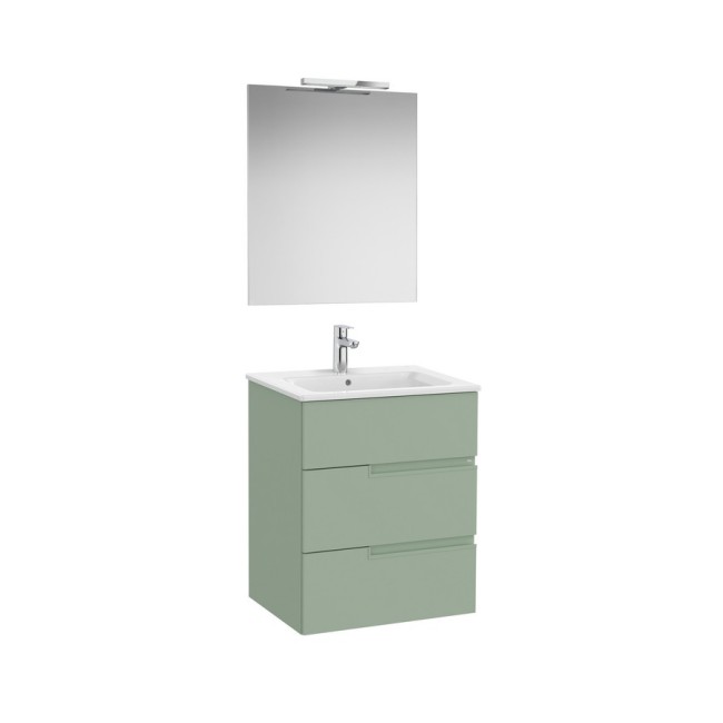 Victoria-n pack (meuble+lavabo+miroir+applique) 3 tiroirs droite 600 mm vert sauge