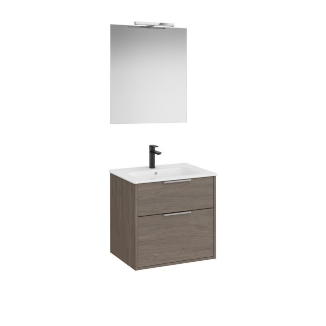 Optica pack 2 tiroirs (meuble, lavabo porcelaine, miroir, applique) 600 mm chêne foncé