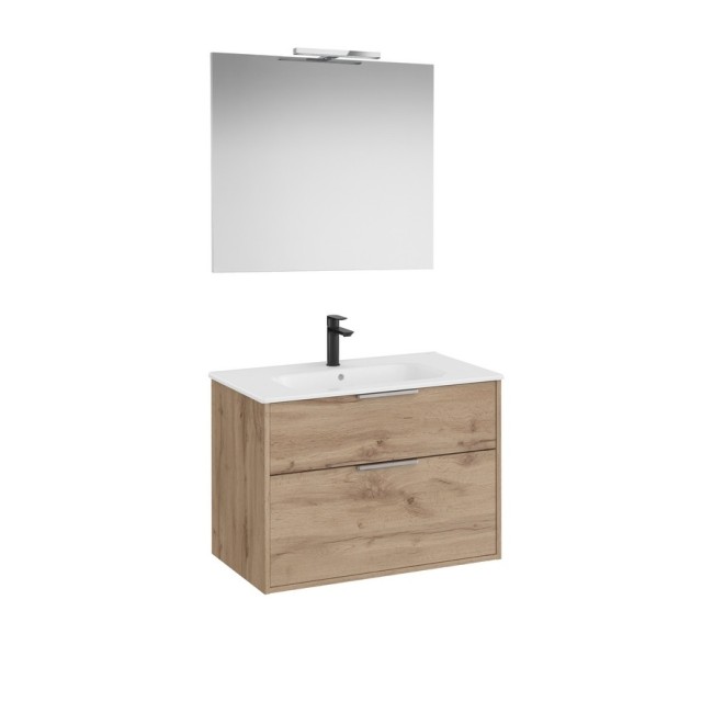 Optica pack 2 tiroirs (meuble, lavabo porcelaine, miroir, applique) 800 mm noyer