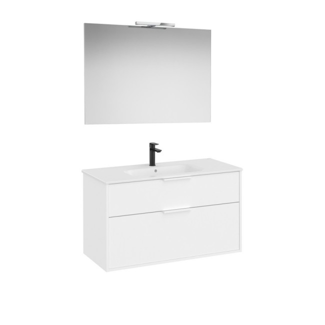 Optica pack 2 tiroirs (meuble, lavabo porcelaine, miroir, applique) 1000 mm blanc mat