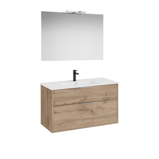 Optica pack 2 tiroirs (meuble, lavabo porcelaine, miroir, applique) 1000 mm noyer