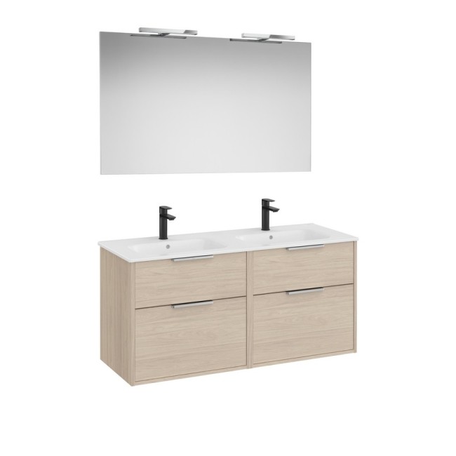 Optica pack 4 tiroirs (meuble, lavabo porcelaine, miroir, appliques) 1200 mm frêne clair