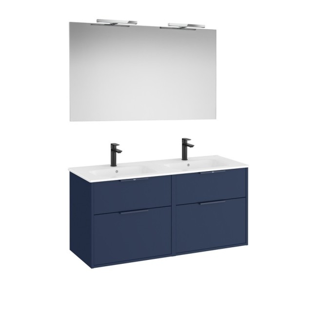 Optica pack 4 tiroirs (meuble, lavabo porcelaine, miroir, appliques) 1200 mm bleu acier mat