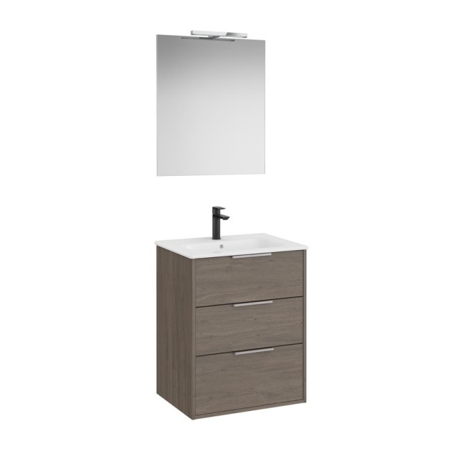 Optica pack 3 tiroirs (meuble, lavabo porcelaine, miroir, applique) 600 mm chêne foncé
