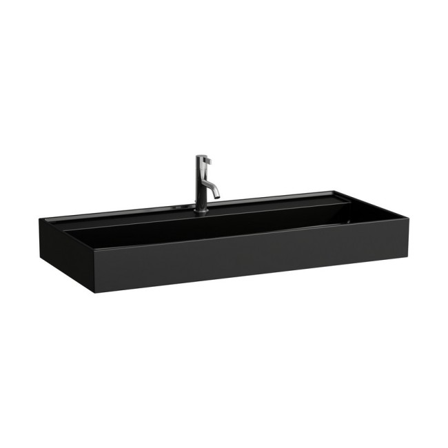 Kartell laufen lavabo mural ou à poser sur meuble avec 3 trous pour la robinetterie 1000x460x120mm noir brillant