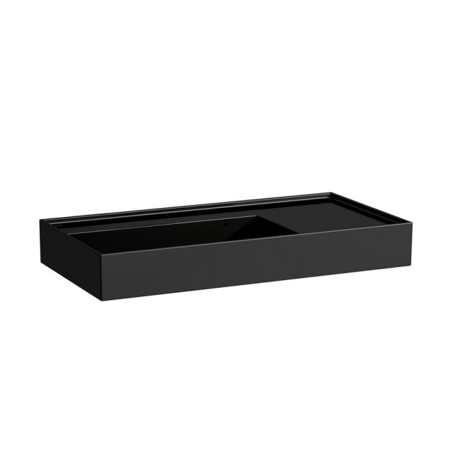 Kartell laufen lavabo mural ou à poser sur meuble, tablette à droite, avec écoulement caché non percé, sans trop-plein 900x460x120mm noir brillant