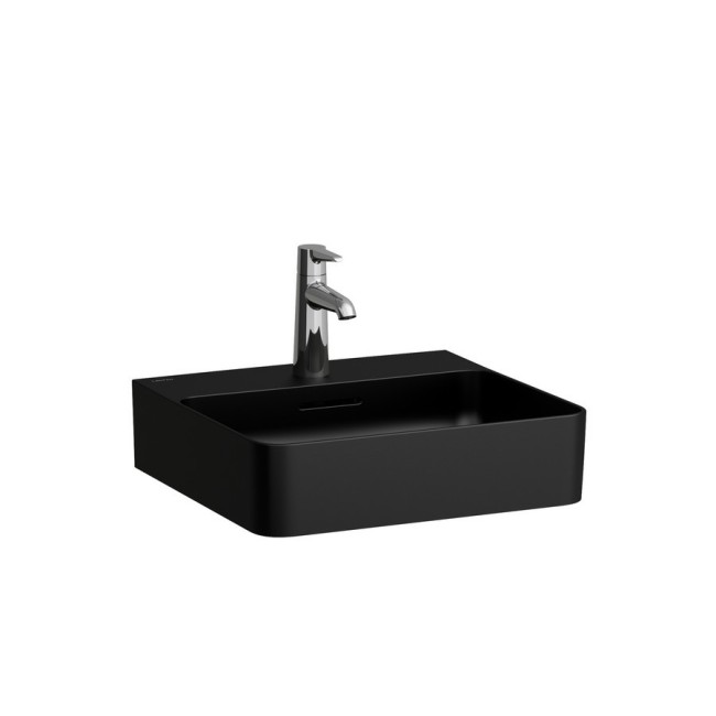 Val lave-mains mural ou à poser sur meuble avec 1 trou pour la robinetterie 450x420x115mm noir mat