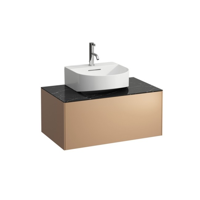 Sonar meuble sous lavabo, 1 tiroir, pour lavabos 816341, 816342, découpe centrale 775x455x340mm cuivre, plan noir marquina