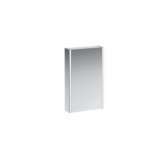 Frame 25 armoire de toilette, 450mm, aluminium, 1 porte avec miroir à l’intérieur/l’extérieur, charnières à gauche, avec interrupteur tactile, 2 prises, 2 éléments d’éclairage led verticaux (variables) 450x150x750mm miroir