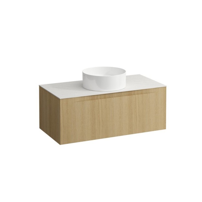 Arun meuble 1000 1t avec découpe centrale plan ardesia bianca chêne clair - LAUFEN H4141111512501