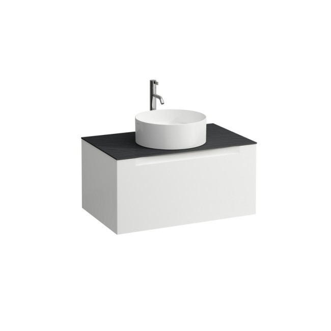 Arun meuble 800, 1 tiroir, avec découpe centrale, plan en grès cérame de 6 mm ardesia nera, percé 1 trou pour la robinetterie multicolour