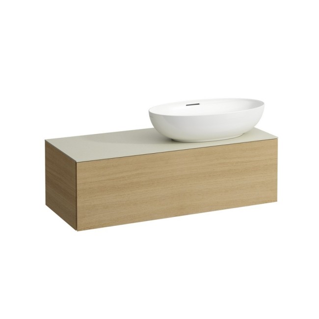 Ilbagnoalessi meuble sous vasque 1200, 1 tiroir, avec découpe à droite, plan calce avorio, trou pré-percé pour la robinetterie, pour lavabos h818977/8 1200x500x370 mm chêne clair