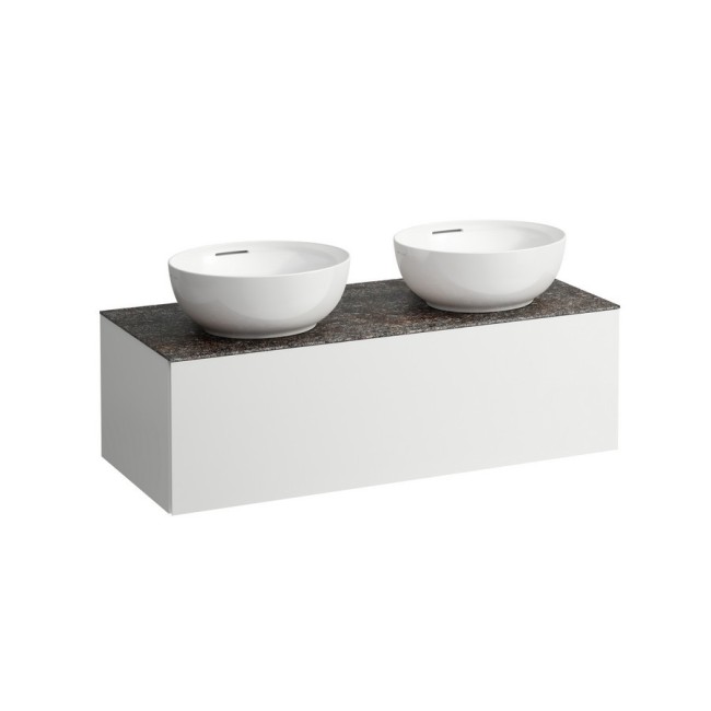 Ilbagnoalessi meuble sous vasque 1200, 1 tiroir, avec découpe à gauche et à droite, plan marrone naturale, pour lavabos h818975/6 1200x500x370 mm blanc mat