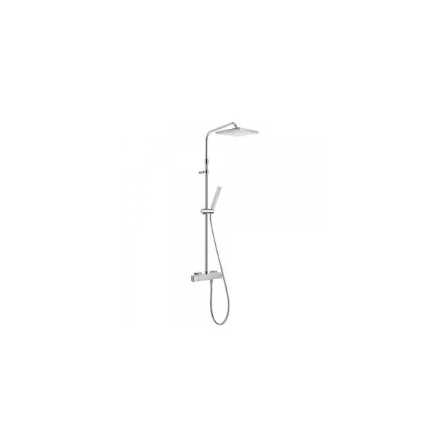 Ensemble mitigeur douche CUADRO · Douche fixe de 250x250 mm. à rotule. (1.34.138.26). · Douchette anticalcaire (006.639.01). · Flexible satin (91.34.609.15). · Barre télescopique. - TRES 00719701