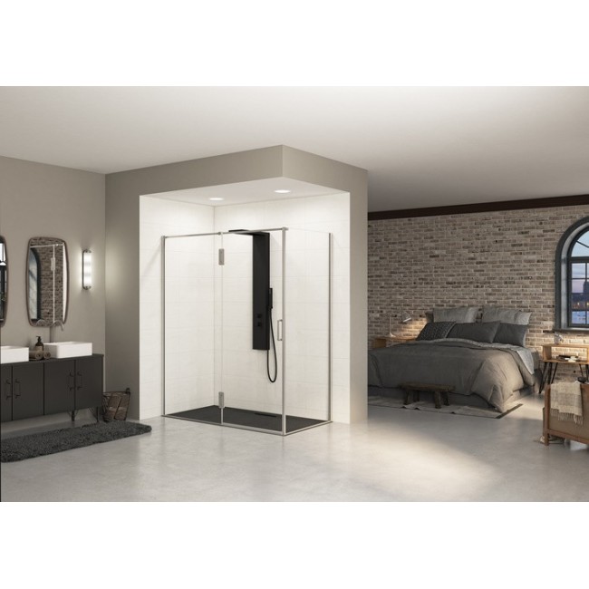 Paroi Ekinox P pour P+F 180 profilé Inox, verre transparent charnière à gauche