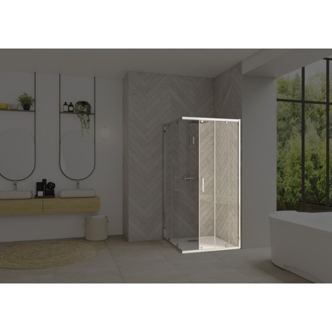 Paroi Smart Design accès angle coulissant 120 profilé chromé verre transparent partie fixe à droite