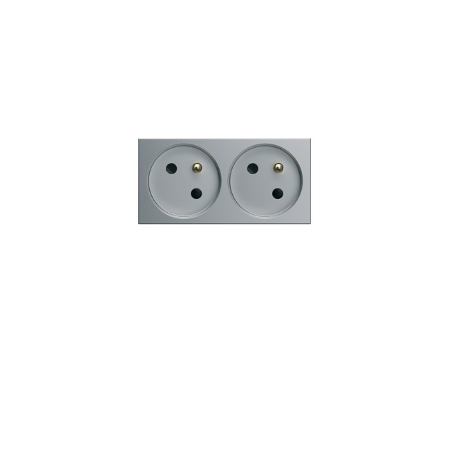 PC dble goul. 2P+T 16A titane - APPAREILLAGE MURAL GALLERY HAGER WXF422T GALLERY - PRISES CRT FORT